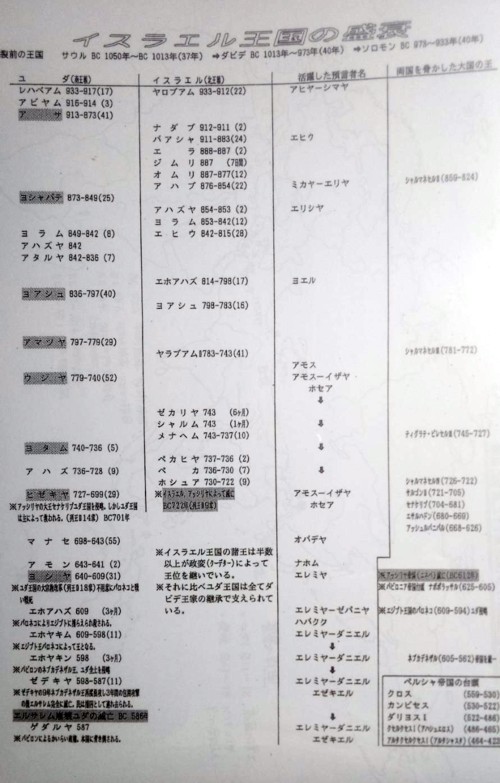 | 列王記第二 15 章13節~26節 15:13 ヤベシュの子シャルムは、ユダの王ウジヤの第三十九年に王となり、サマリアで一か月間、王であった。 15:14 ガディの子メナヘムは、ティルツァから上ってサマリアに至り、ヤベシュの子シャルムをサマリアで打ち、彼を殺して、彼に代わって王となった。 15:15 シャルムについてのその他の事柄、彼が企てた謀反は、『イスラエルの王の歴代誌』にまさしく記されている。 15:16 そのとき、メナヘムはティルツァから出て、ティフサフとその住民、その領地を討った。彼らが城門を開かなかったので、その中のすべての妊婦たちを打ち殺して切り裂いた。 15:17 ユダの王アザルヤの第三十九年に、ガディの子メナヘムがイスラエルの王となり、サマリアで十年間、王であった。 15:18 彼は【主】の目に悪であることを行い、一生の間、イスラエルに罪を犯させたネバテの子ヤロブアムの罪から離れなかった。 15:19 アッシリアの王プルがこの国に来たとき、メナヘムは銀千タラントをプルに与えた。プルの援助によって、王国を強くするためであった。 15:20 メナヘムは、イスラエルのすべての有力者にそれぞれ銀五十シェケルを供出させ、これをアッシリアの王に与えたので、アッシリアの王は引き返し、この国にとどまらなかった。 15:21 メナヘムについてのその他の事柄、彼が行ったすべてのこと、それは『イスラエルの王の歴代誌』に確かに記されている。 15:22 メナヘムは先祖とともに眠りにつき、その子ペカフヤが代わって王となった。 15:23 ユダの王アザルヤの第五十年に、メナヘムの子ペカフヤがサマリアでイスラエルの王となり、二年間、王であった。 15:24 彼は【主】の目に悪であることを行い、イスラエルに罪を犯させたネバテの子ヤロブアムの罪から離れなかった。 15:25 彼の侍従、レマルヤの子ペカは、彼に対して謀反を企て、サマリアの王宮の高殿で、ペカフヤとアルゴブとアルエを打ち殺した。ペカには五十人のギルアデ人が加わっていた。ペカはペカフヤを殺し、彼に代わって王となった。 15:26 ペカフヤについてのその他の事柄、彼が行ったすべてのことは、『イスラエルの王の歴代誌』にまさしく記されている。 |
